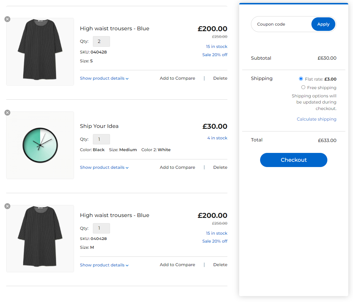 Cart Page – List Style Three