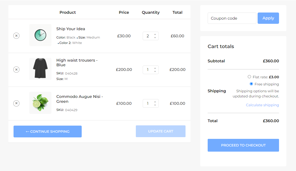 Cart Page – Table Style Nine