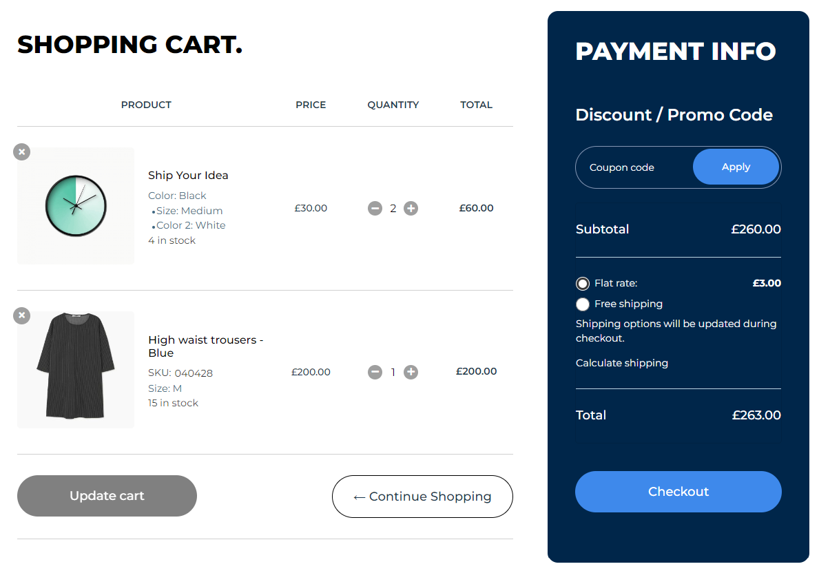 Cart Page – Table Style Eight